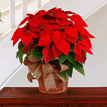 Maxi red poinsettia plant with decorative greenery. This year wish a merry Christmas with a beautiful surprise.