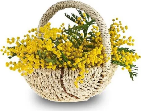 Elegant arrangement of mimosas in a basket, suitable for Women's Day.